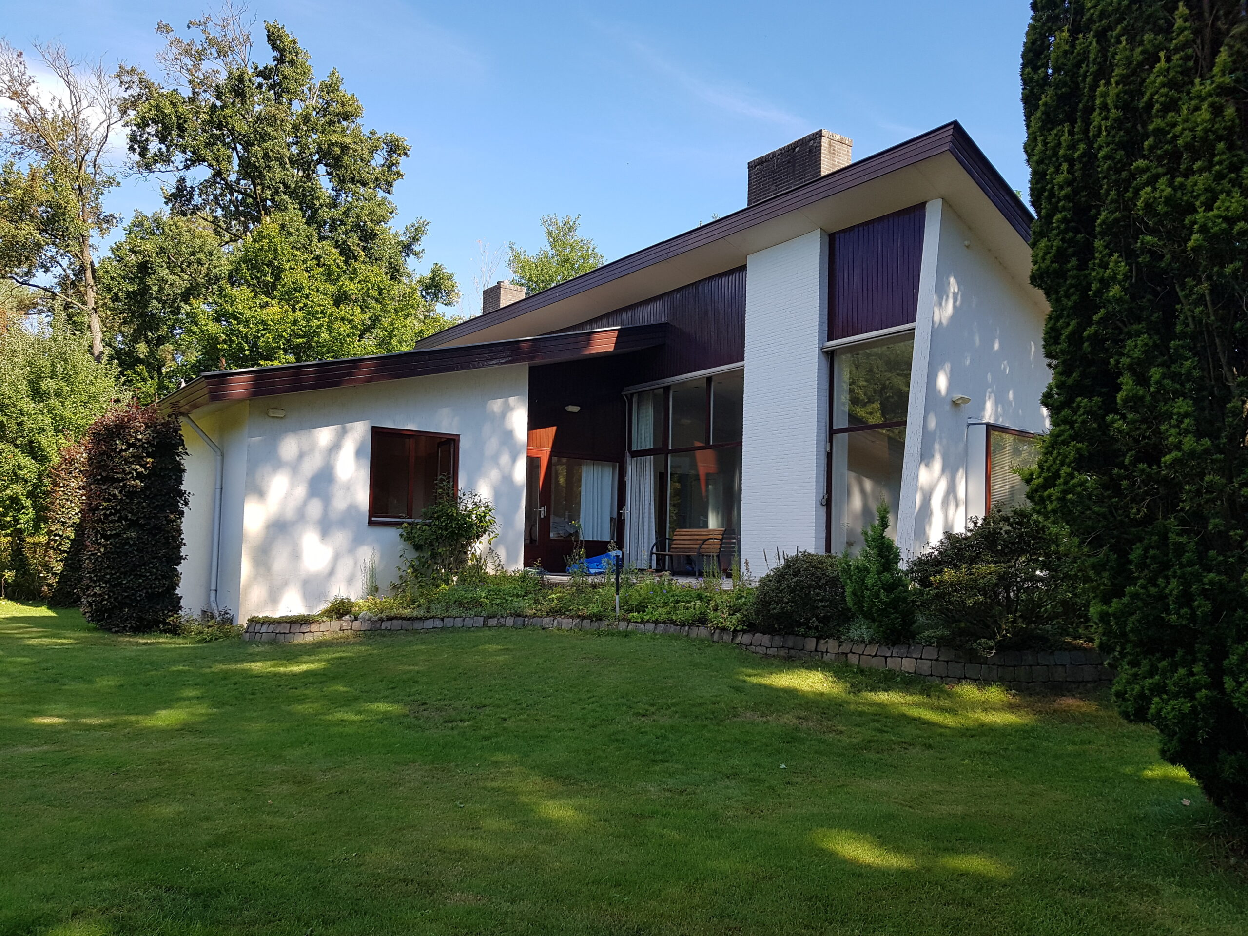 Deze iconische villa uit 1960, gelegen in Waalre, is een prachtig voorbeeld van Midcentury Modern architectuur. Een stijl die bekendstaat om strakke lijnen, eenvoud en een sterke verbinding met de natuur, onder andere door het gebruik van grote ramen. Een opvallend kenmerk van dit huis is de enkele wandconstructie. Het huis is opgetrokken uit betonblokken en aan de buitenzijde gestucadoord. Hoewel esthetisch uniek, bleek dit funest voor een goed binnenklimaat.