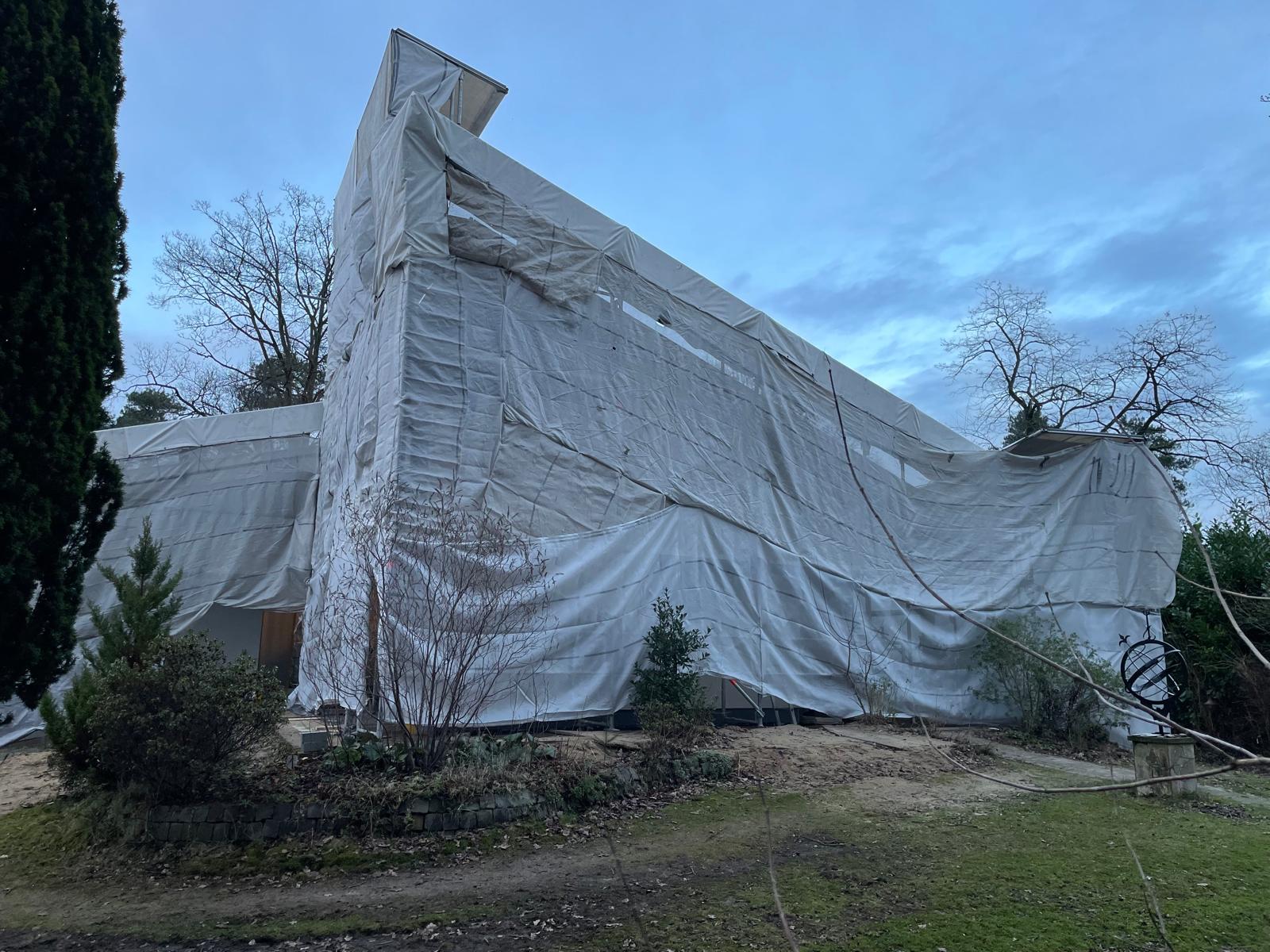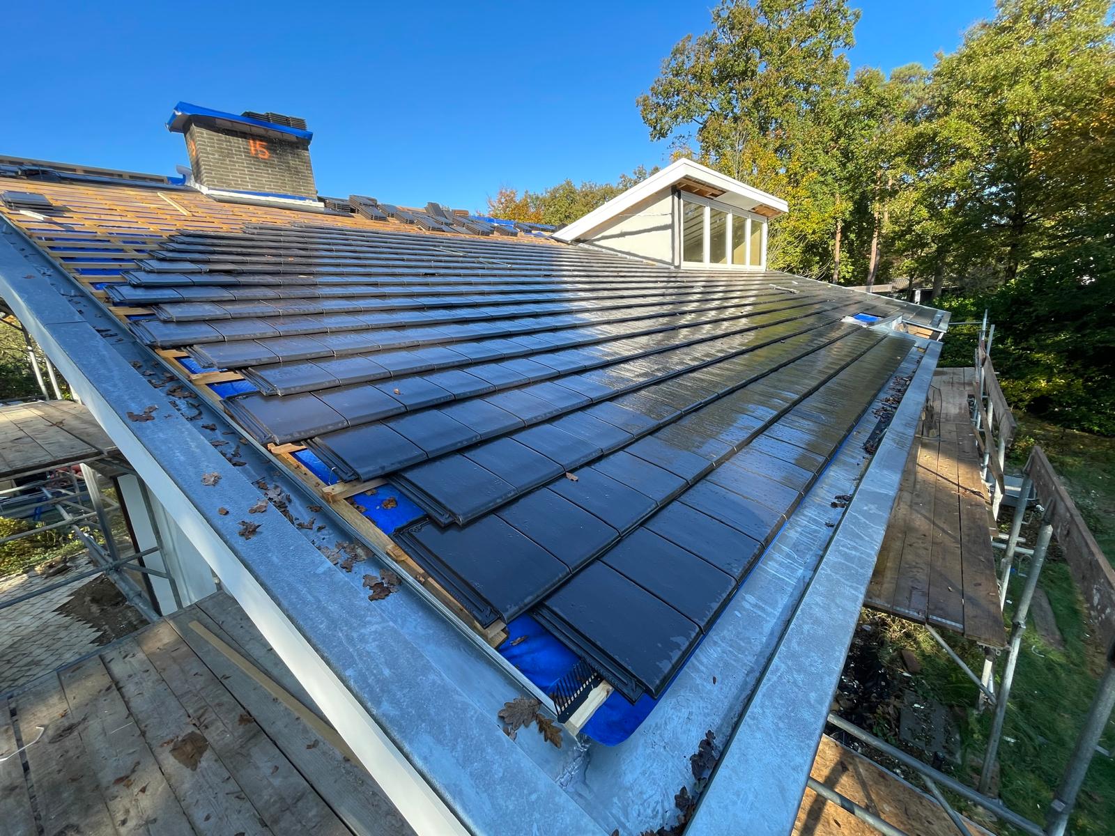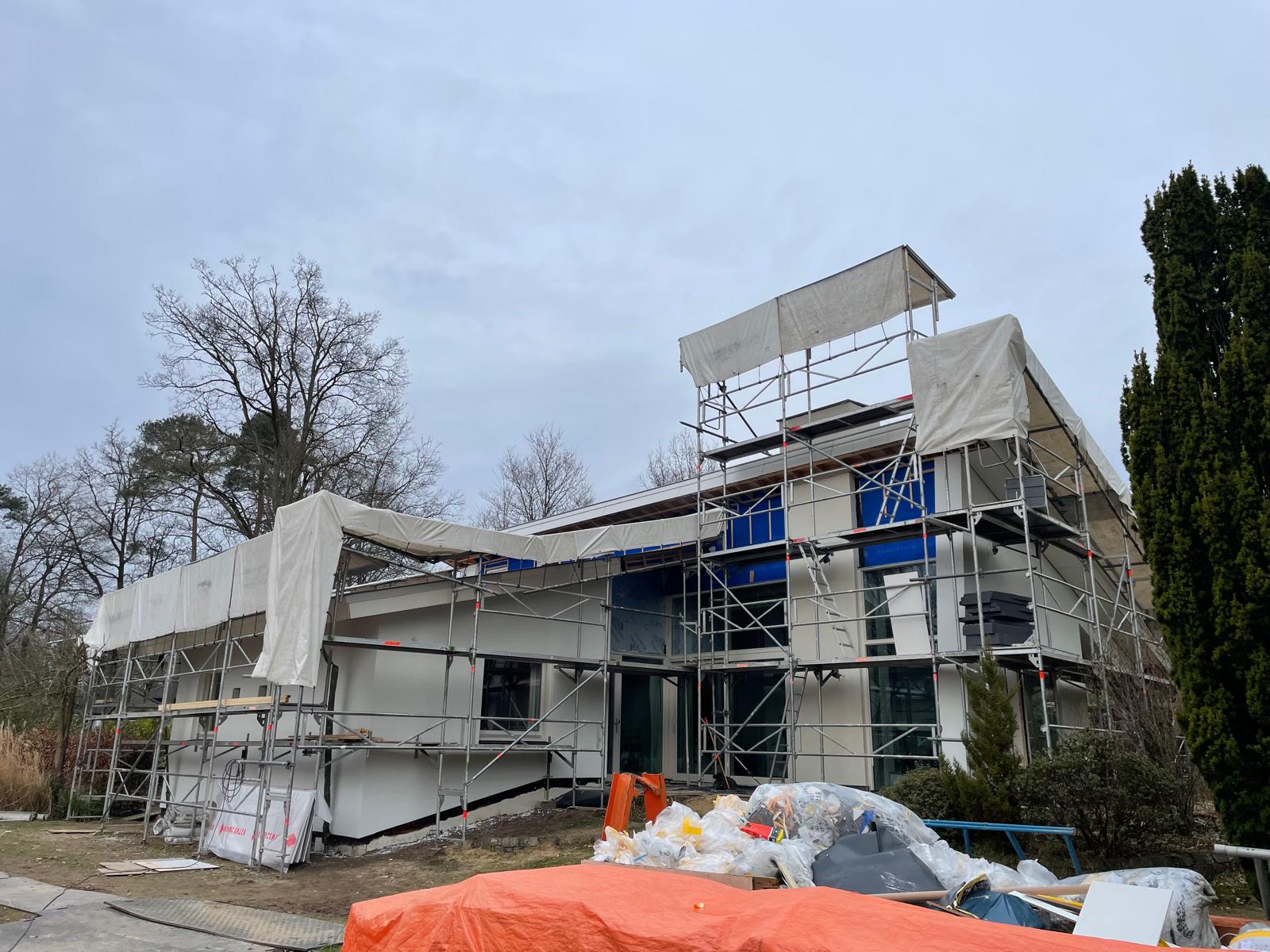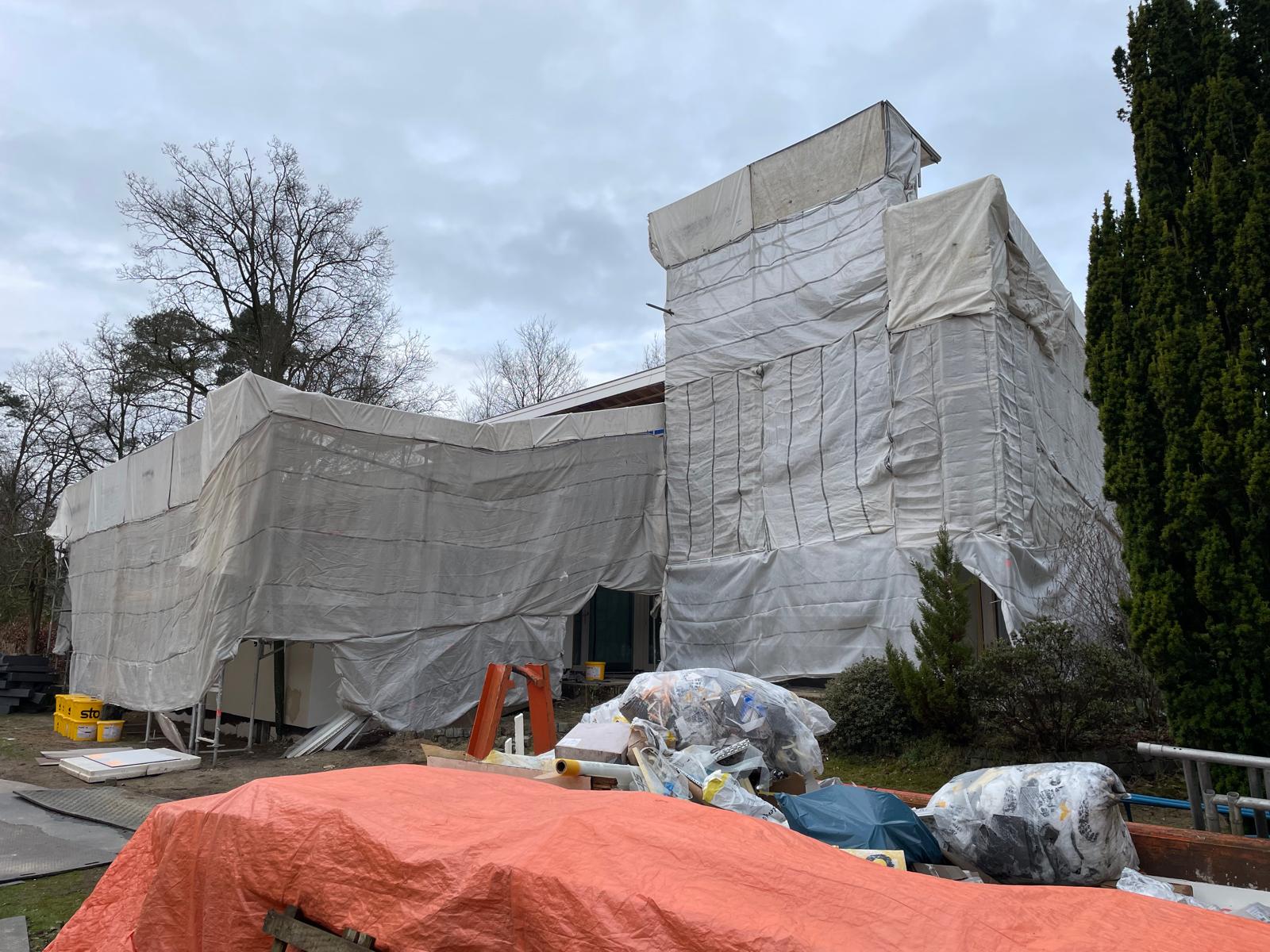 - Dakoverstek aanpassen: Het bestaande dakoverstek werd in zijn geheel afgezaagd, waarna het nieuwe dakoverstek in de lijn met het nieuwe en goed geïsoleerde dak werd gemaakt.